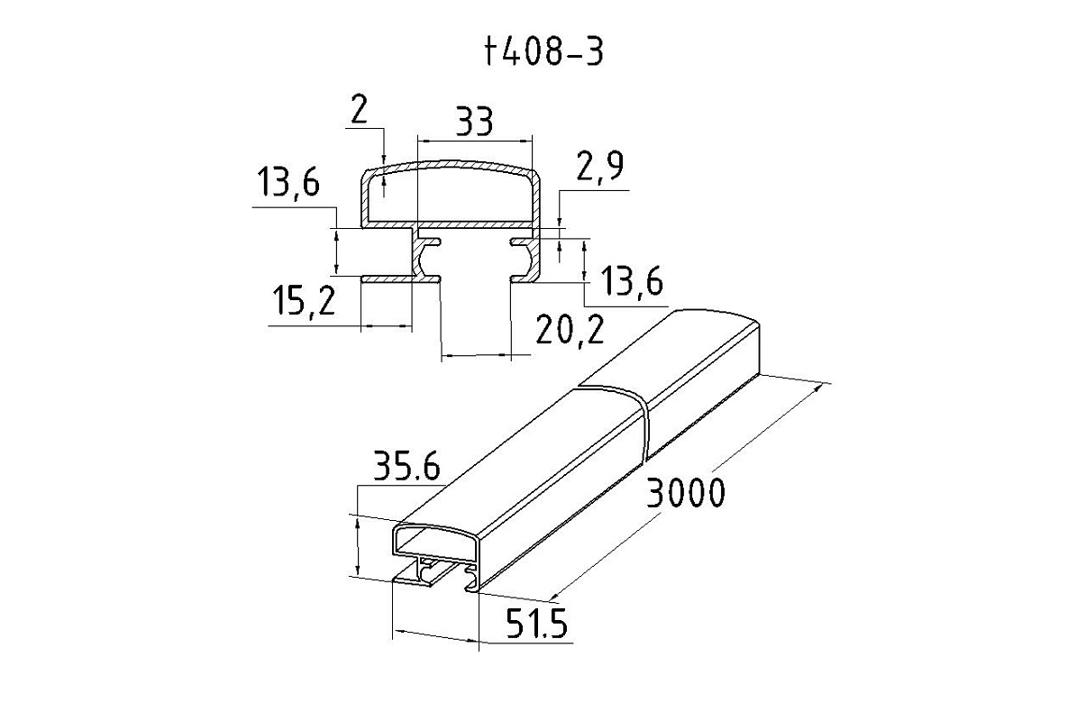 Трек для раздвижной системы на G-профиле, длина 3000мм t408-3