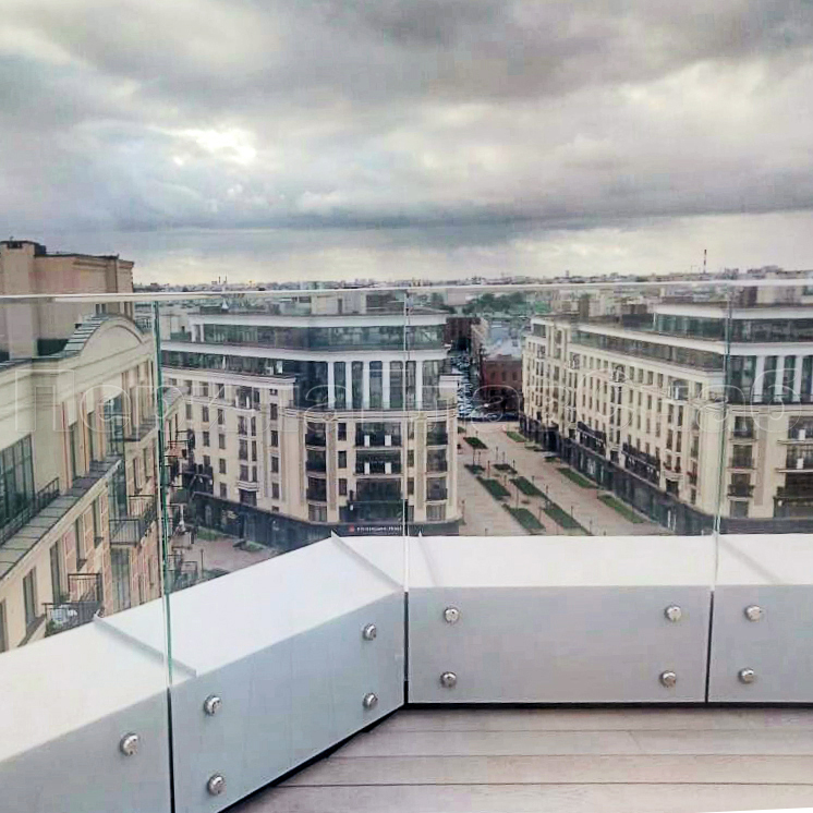 Ограждение на несущем стекле с торцевым креплением для крыш в Красноярске. Готовые проекты ПерилаГлавСнаб