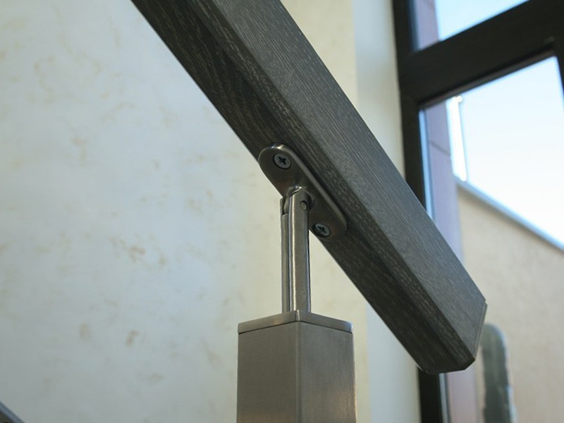 Нержавеющие ограждения без ригелей с квадратным поручнем и стойками с деревянными вставками