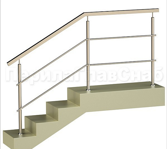 Два ригеля на держателях, круглый поручень и круглые стойки