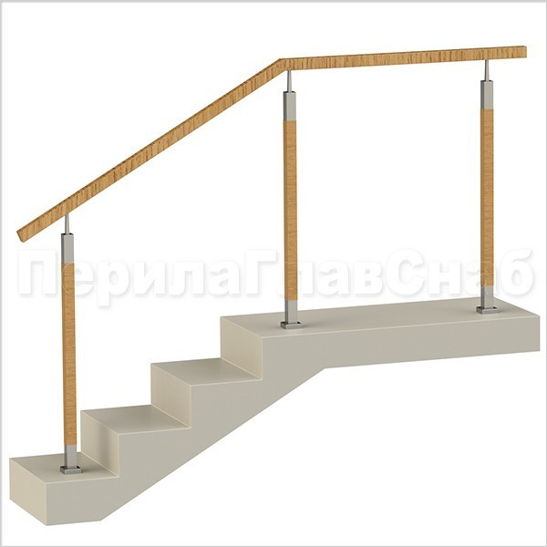 Четыре ригеля на держателях, квадратный деревянный поручень и квадратные стойки