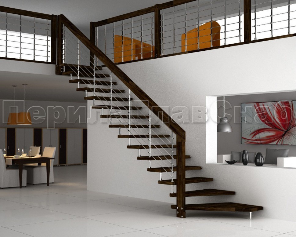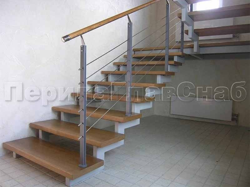 Ограждения с двумя стойками в каждую ступень с деревянным поручнем и без ригелей