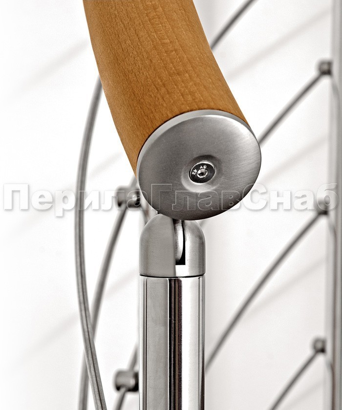 Нержавеющие ограждения без ригелей с круглым деревянным поручнем и стойками с деревянными вставками