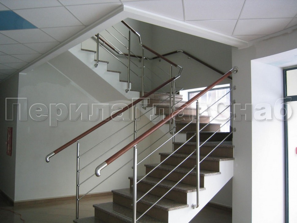 Нержавеющие ограждения без ригелей с круглым поручнем и стойками с деревянными вставками