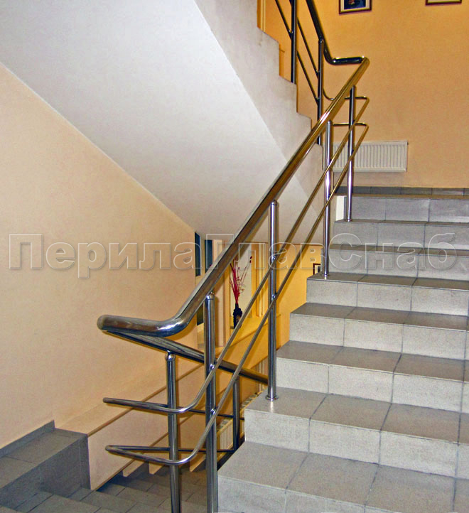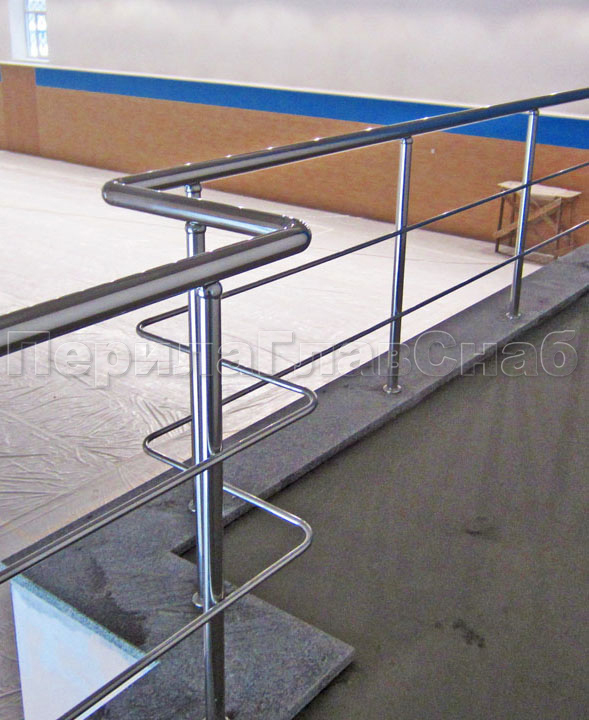 Два ригеля на держателях, квадратный поручень и круглые стойки в Красноярске. Готовые проекты ПерилаГлавСнаб