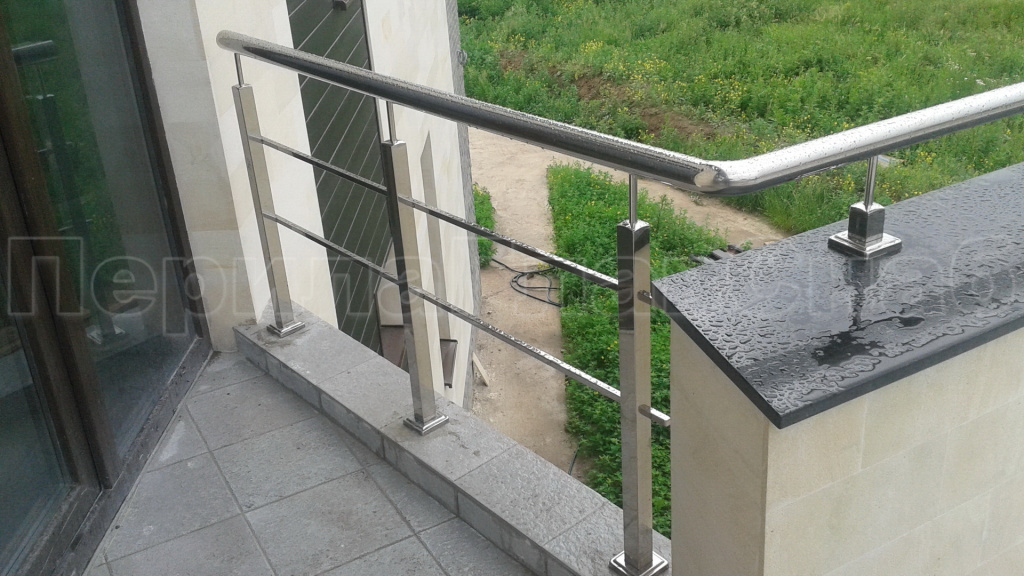 Два ригеля на сварке, квадратный поручень и круглые стойки
