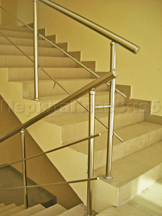 Два ригеля на держателях, круглый поручень и круглые стойки в Красноярске. Готовые проекты ПерилаГлавСнаб