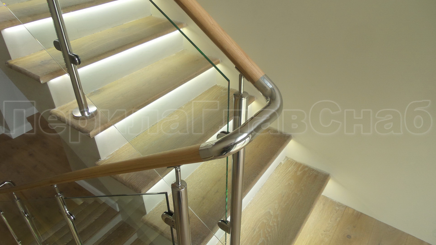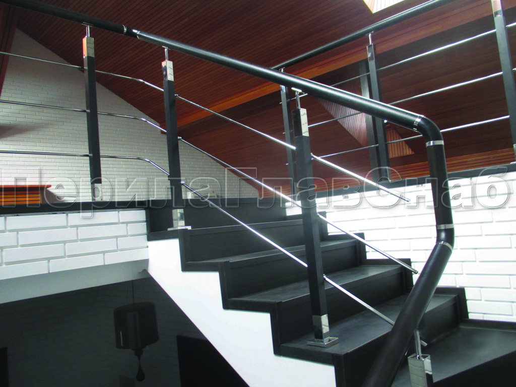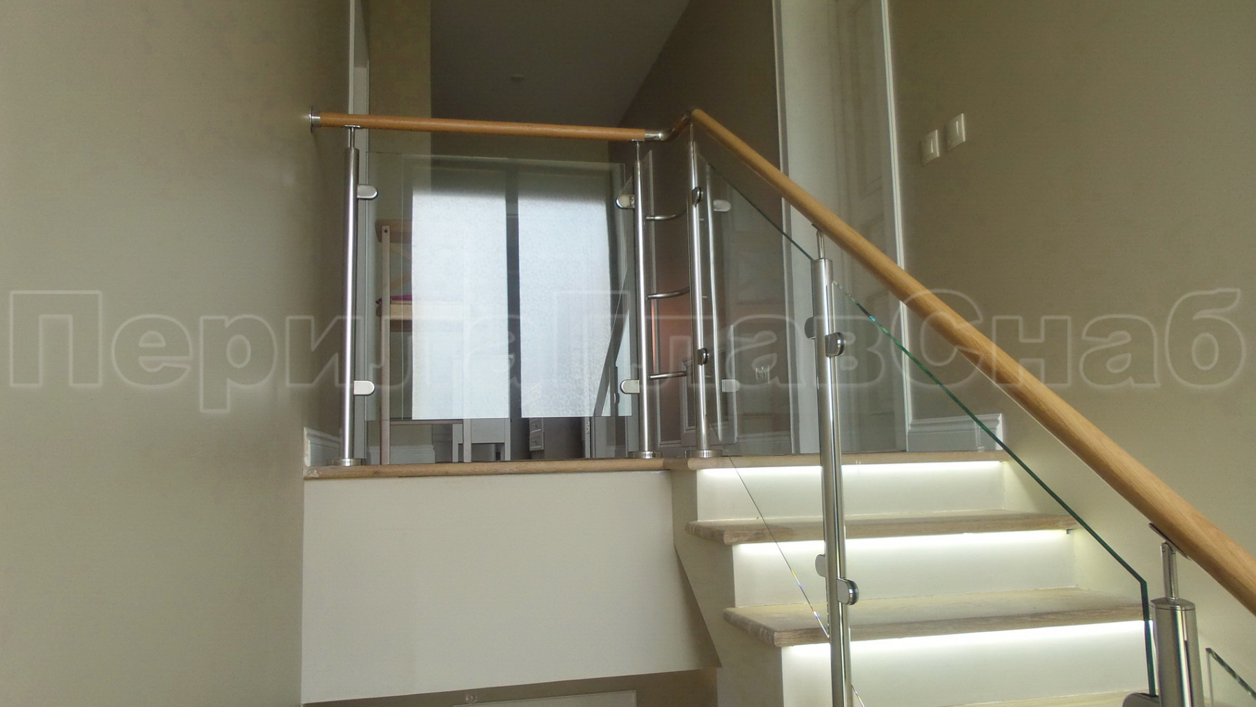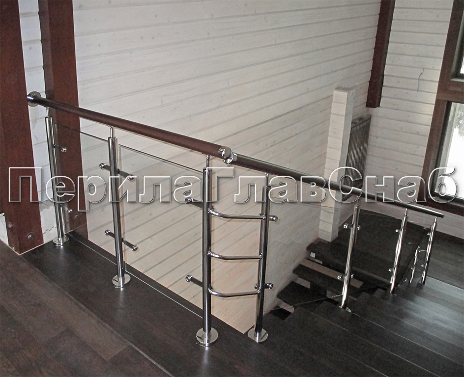 Нержавеющие ограждения без ригелей с деревянным поручнем в Красноярске. Готовые проекты ПерилаГлавСнаб