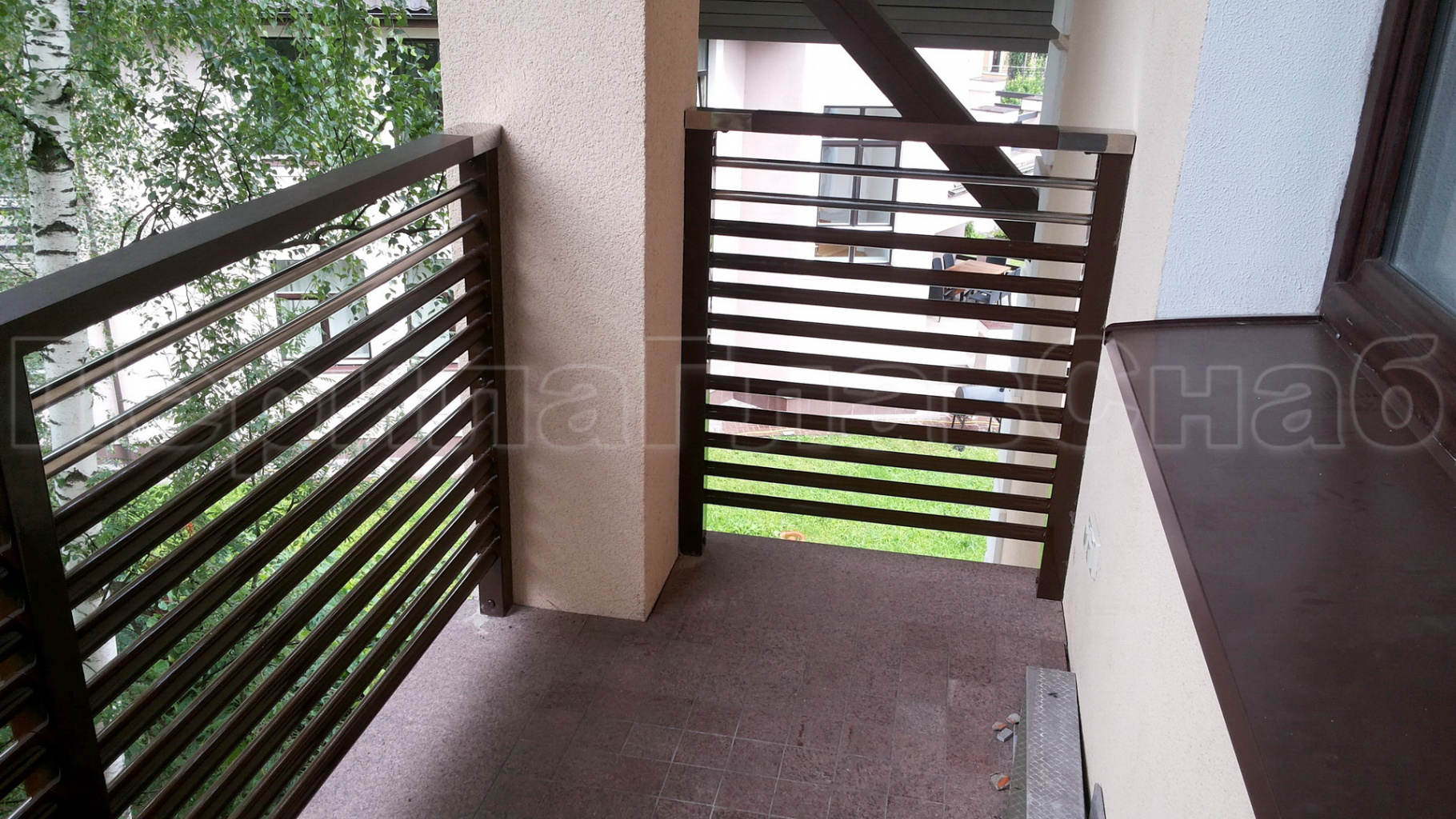 Четыре ригеля на держателях, квадратный поручень и стойки с деревянными вставками в Красноярске. Готовые проекты ПерилаГлавСнаб - фото 1 Четыре ригеля на держателях, квадратный поручень и стойки с деревянными вставками в Красноярске. Готовые проекты ПерилаГлавСнаб - фото 2