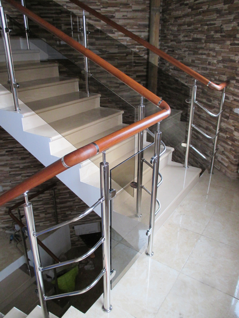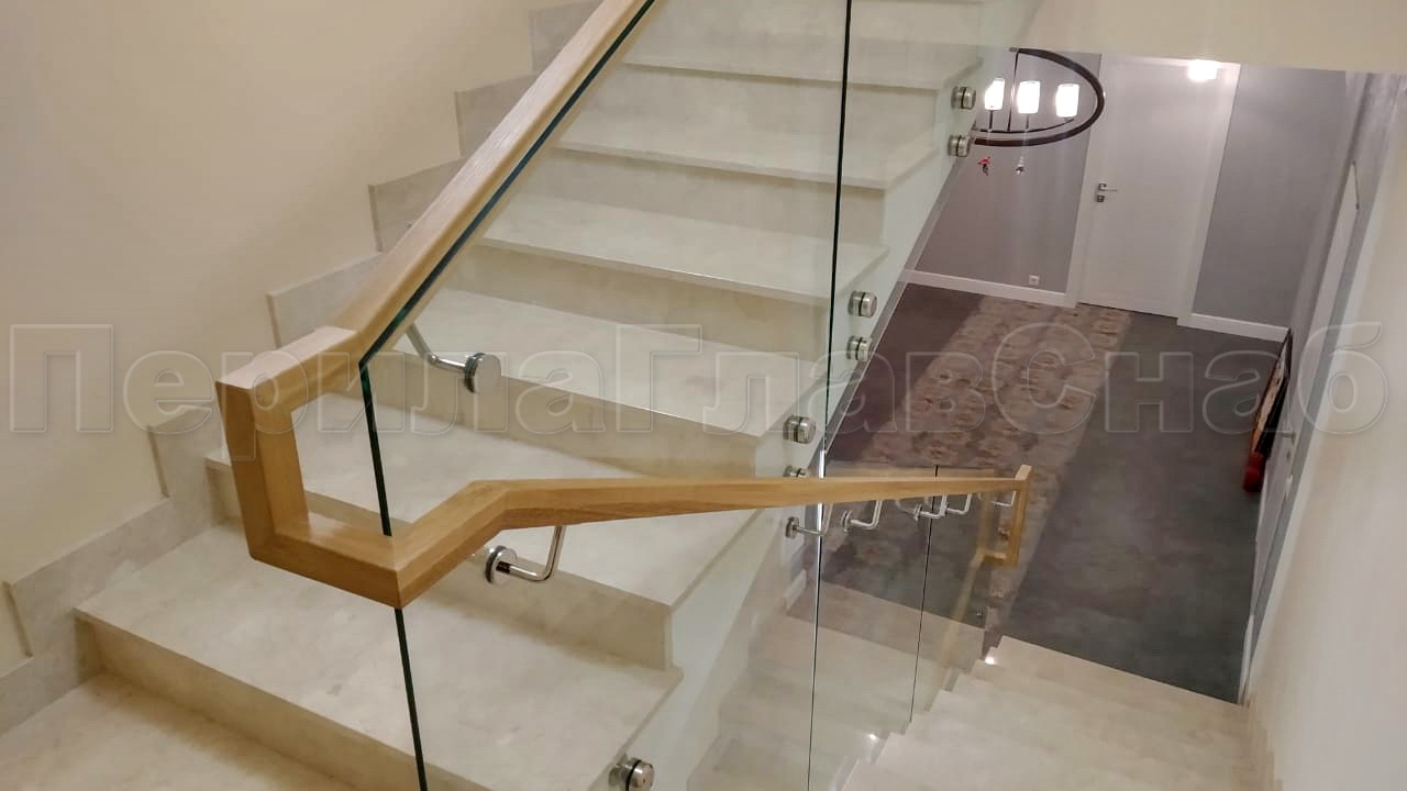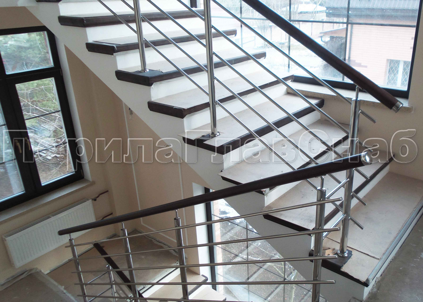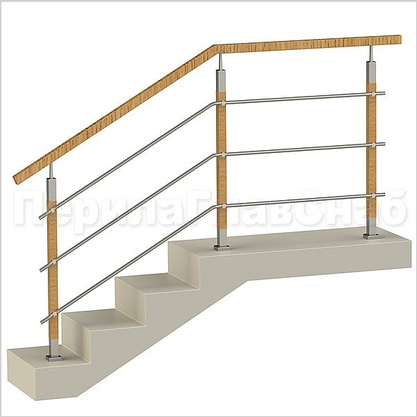 Нержавеющие ограждения без ригелей с квадратным деревянным поручнем в Красноярске. Готовые проекты ПерилаГлавСнаб