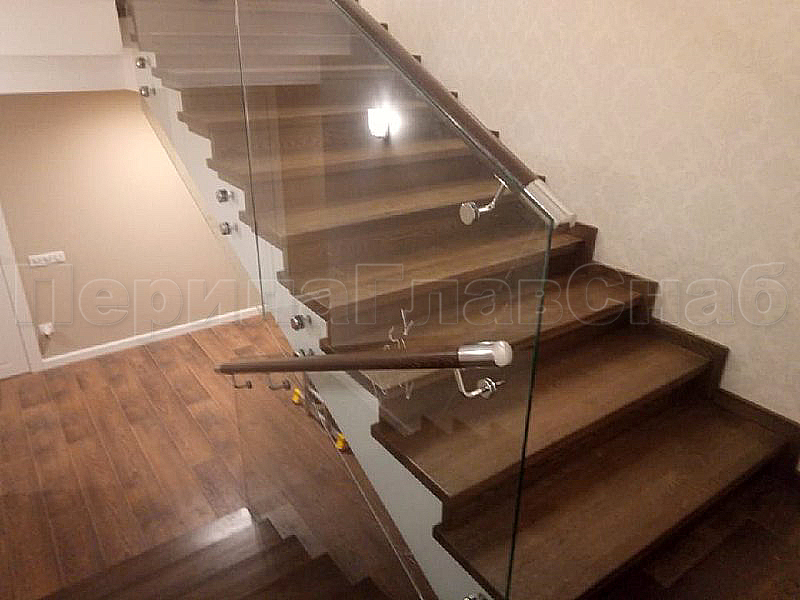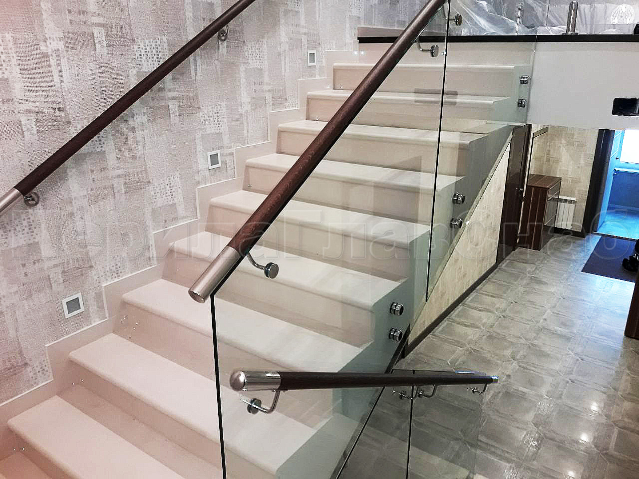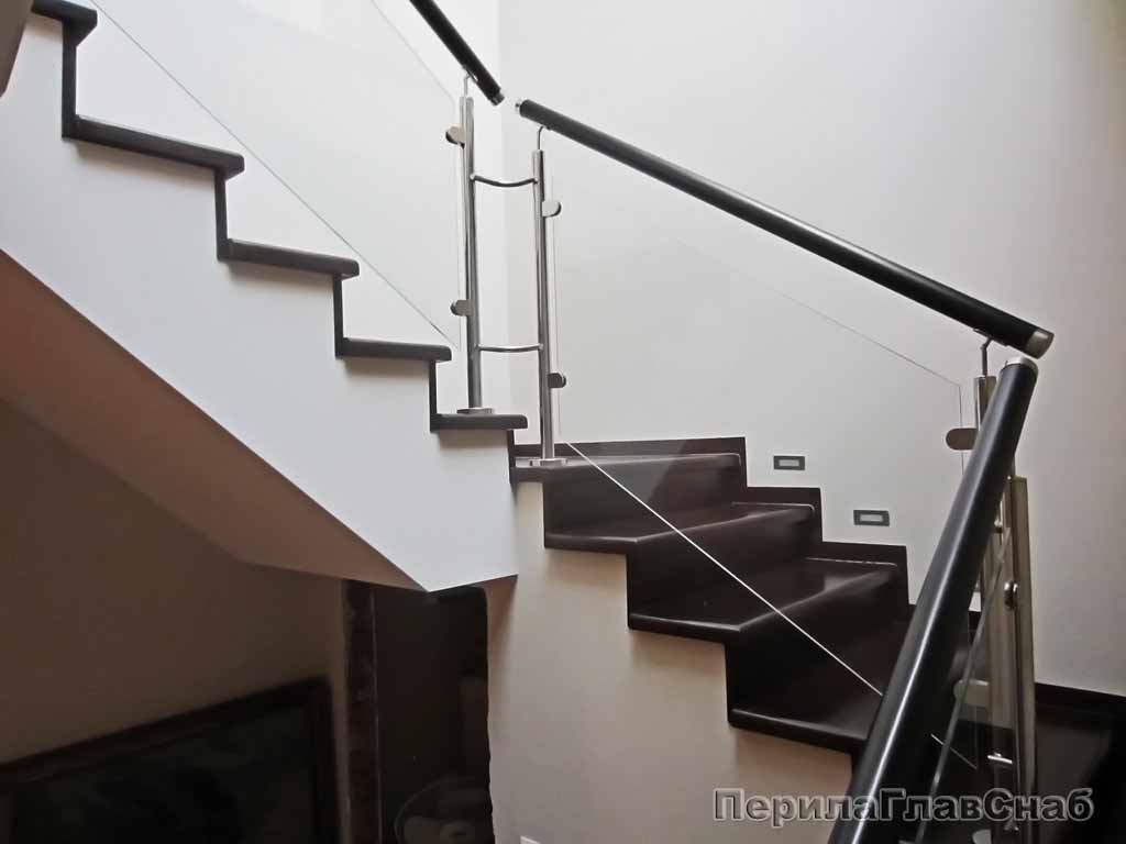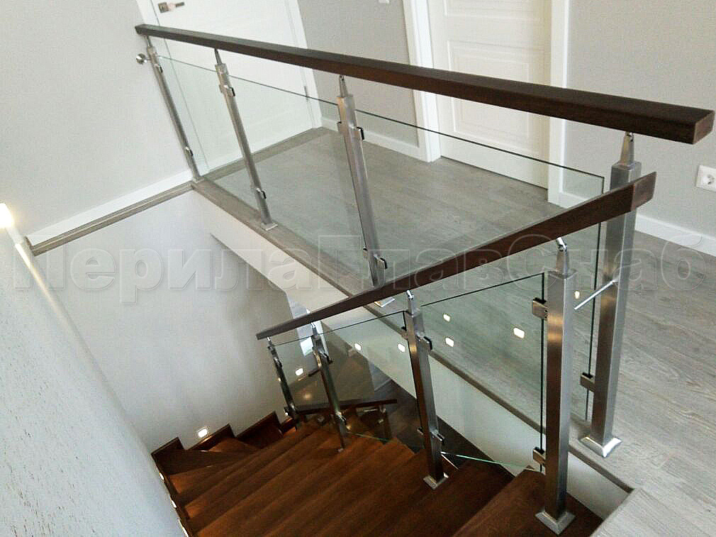 Нержавеющие ограждения без ригелей с квадратным деревянным поручнем в Красноярске. Готовые проекты ПерилаГлавСнаб - фото 1