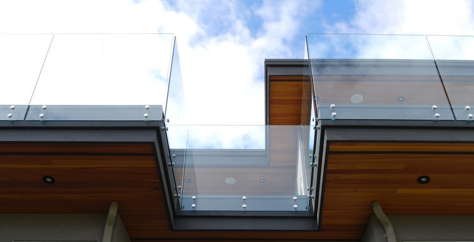 Ограждение с деревянным поручнем на выносе на точечном креплении