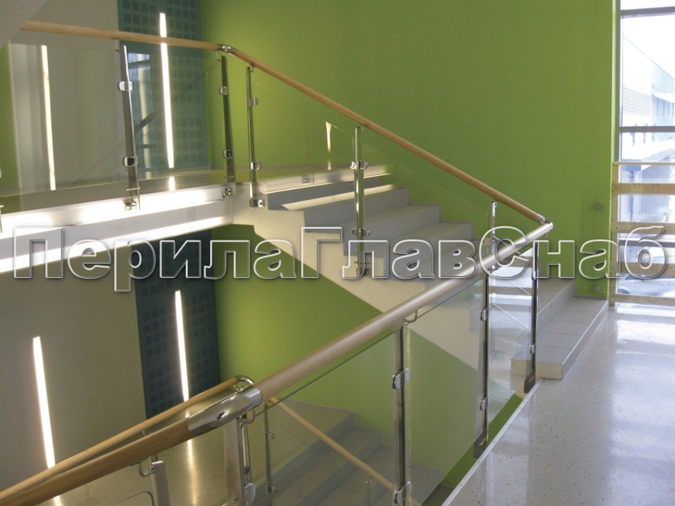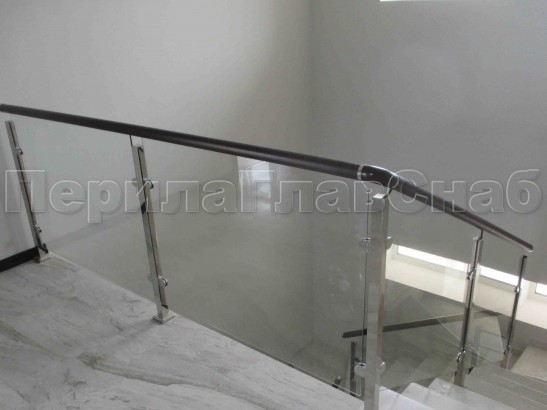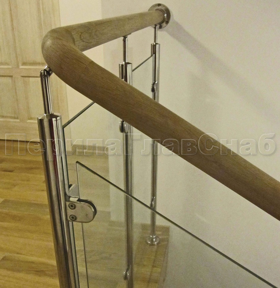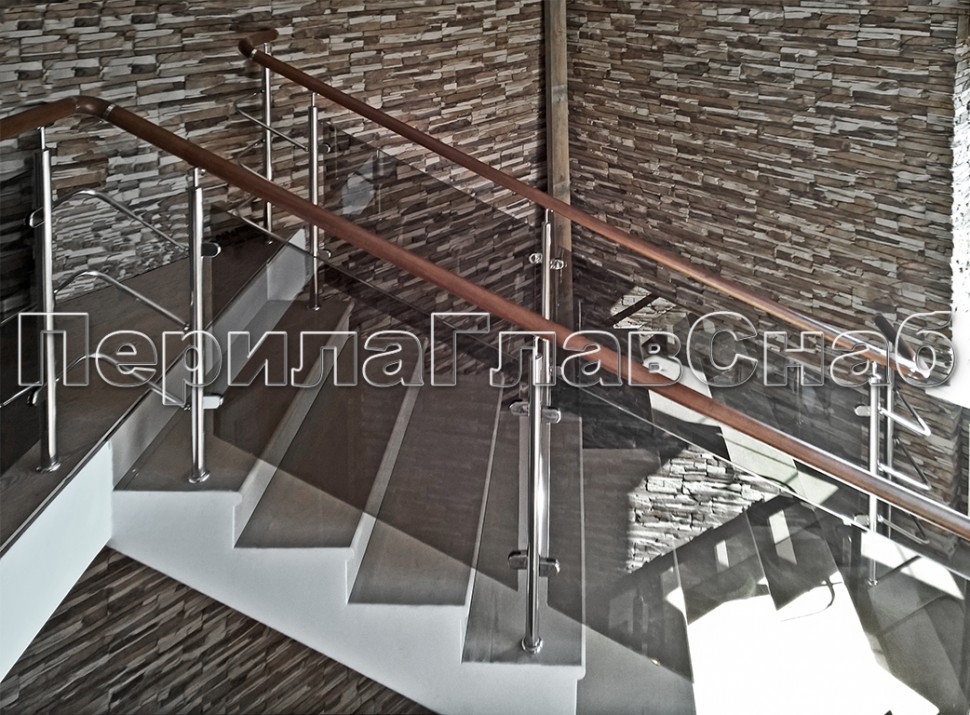 Записаться на встречу Ограждение с деревянным поручнем, стеклом и стойками