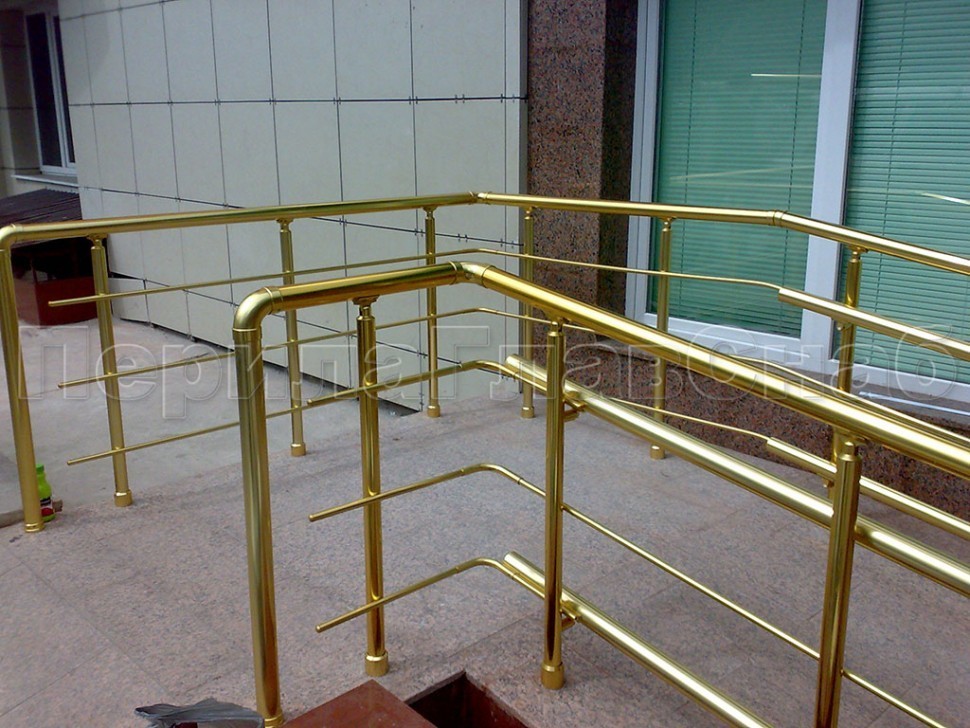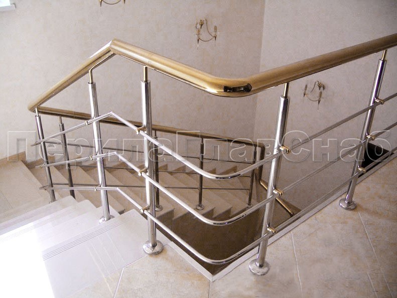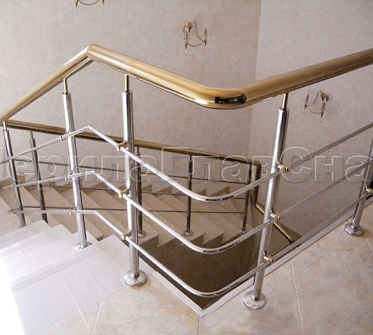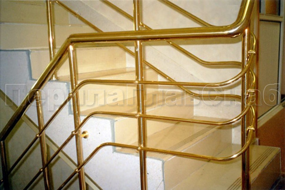 Лестничное ограждение с тремя ригелями и поручнем из латуни