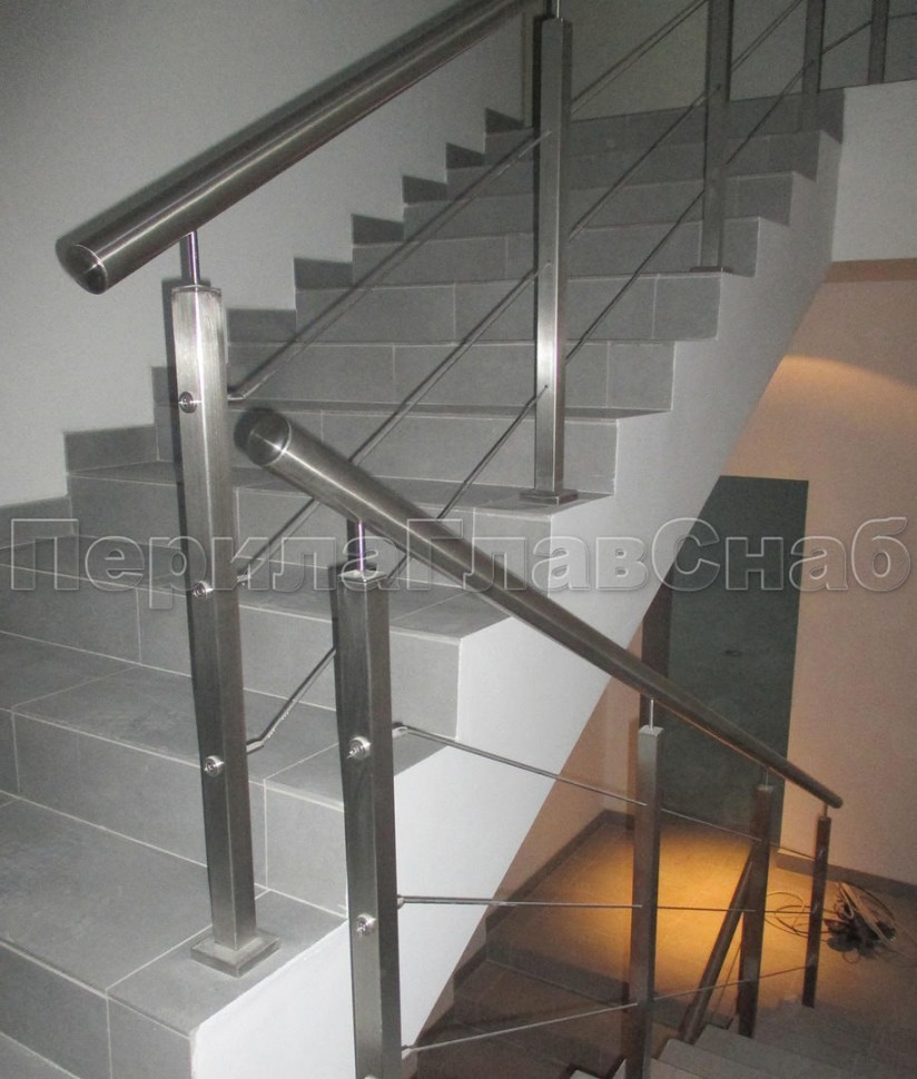 Ограждения из нержавейки. Заполнение из 3х тросиков. Квадратные стойки.