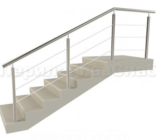 Ограждения из нержавейки. Заполнение из 4х тросиков. Квадратные стойки.