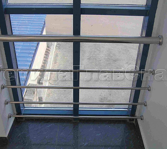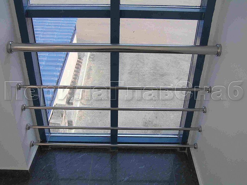 Ограждение на окнах из нержавещей трубы с ригелями