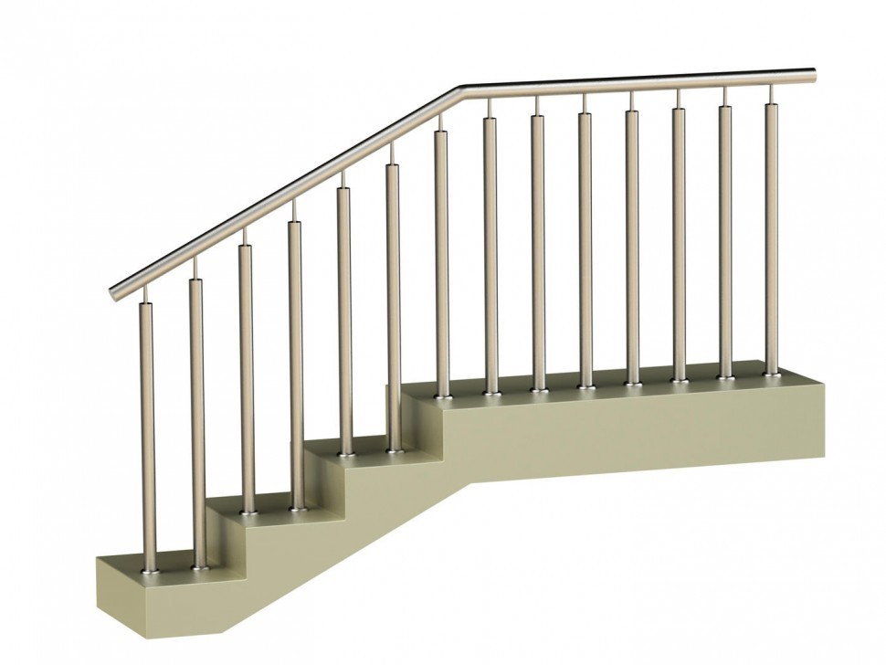 Четыре ригеля на держателях, круглый поручень и квадратные стойки