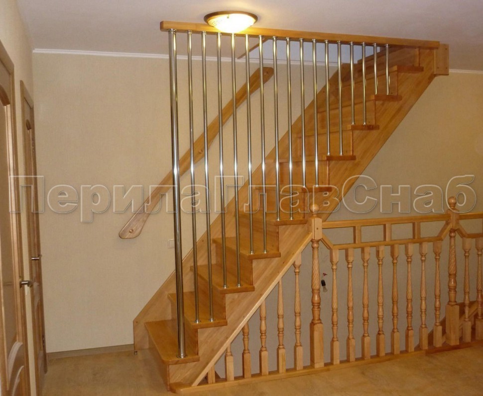 Ограждения с двумя стойками в каждую ступень с деревянным поручнем и без ригелей