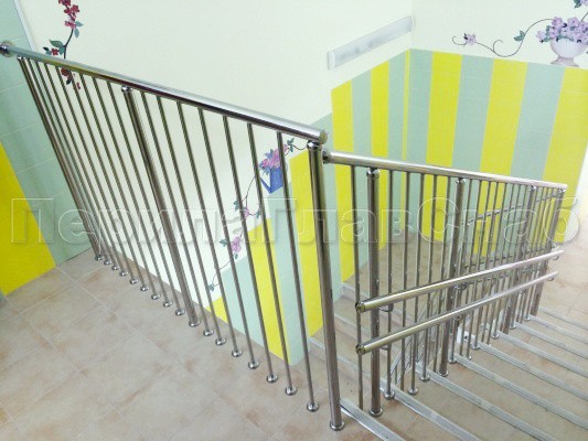 Нержавеющие ограждения для школ и детских садов с вертикальным заполнением “Частокол” - вариант №1 для крыльца