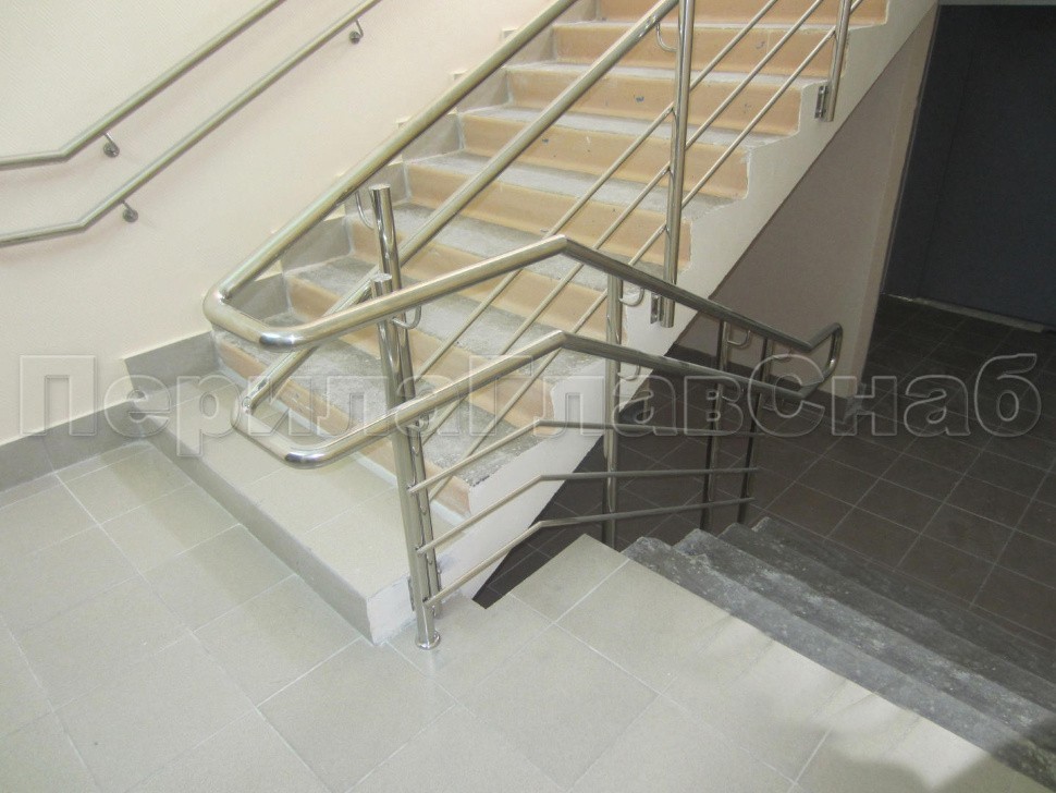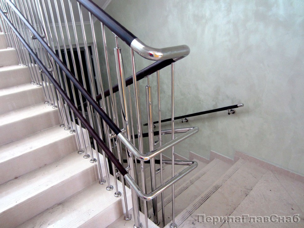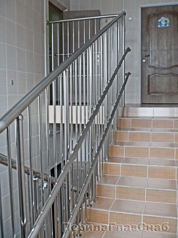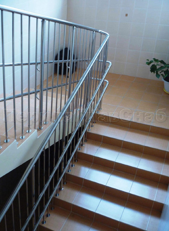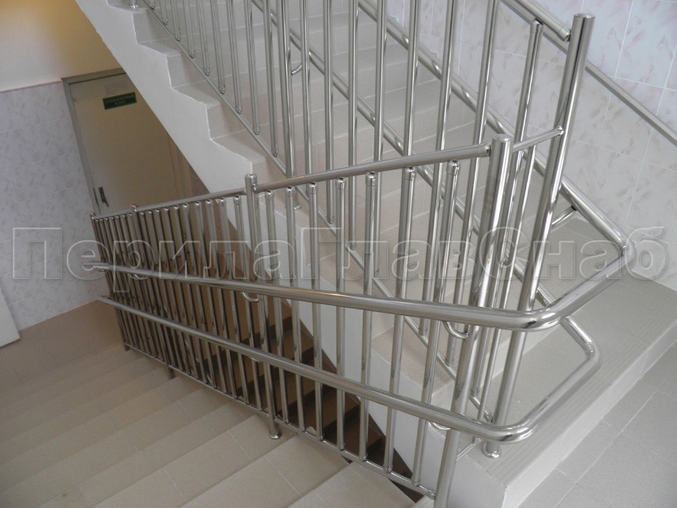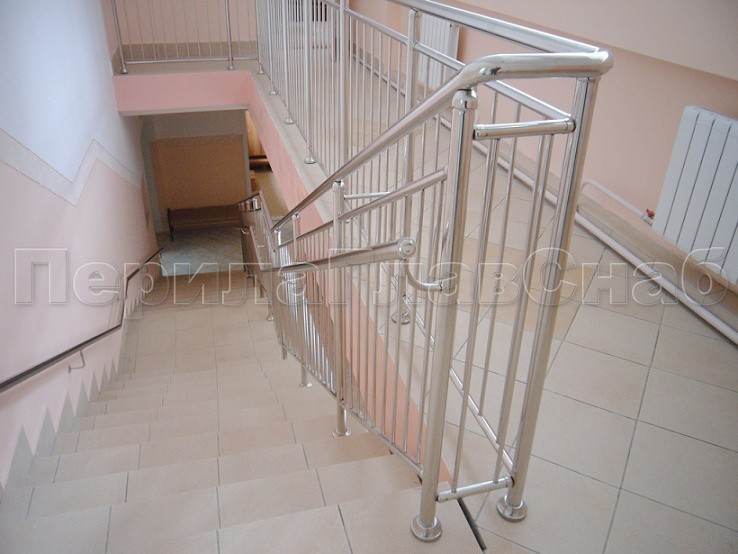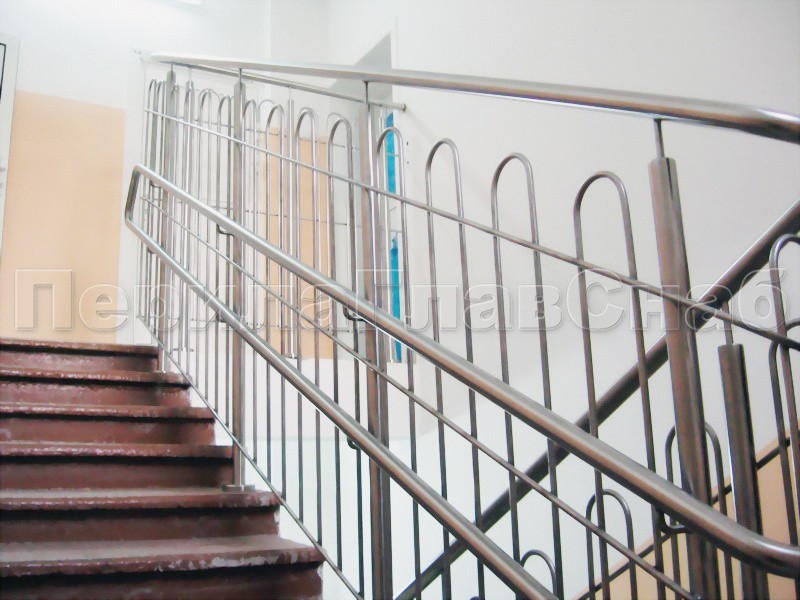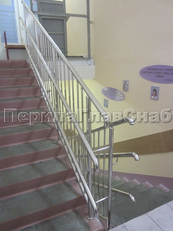 Двойной пристенный поручень из нержавейки в Красноярске. Готовые проекты ПерилаГлавСнаб