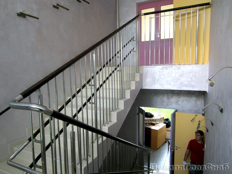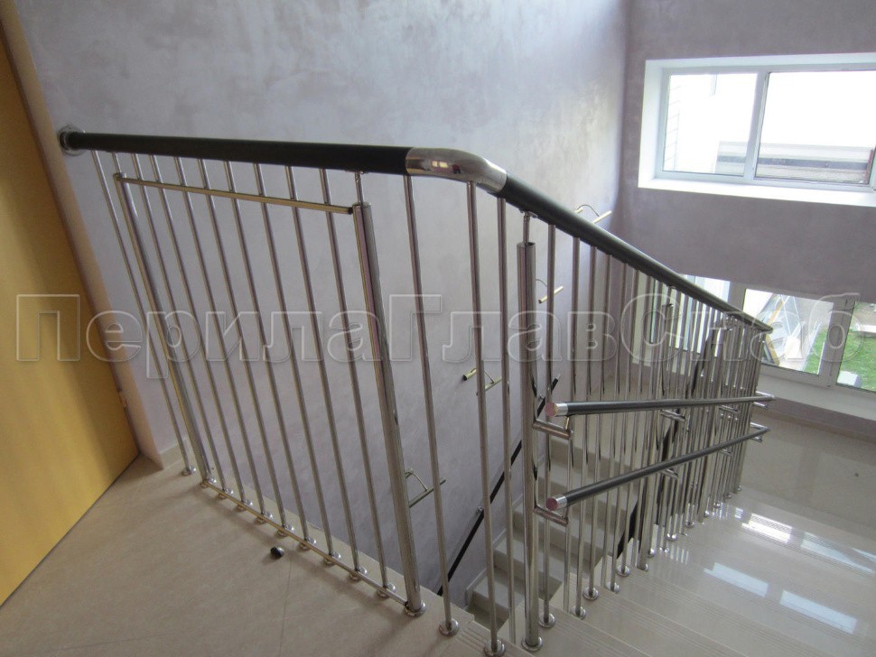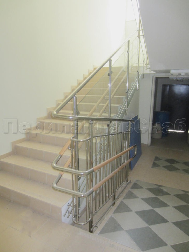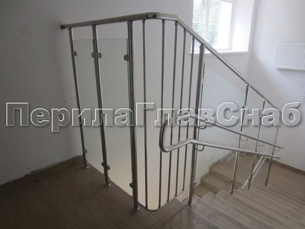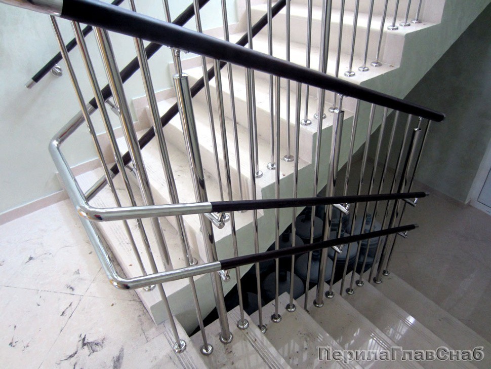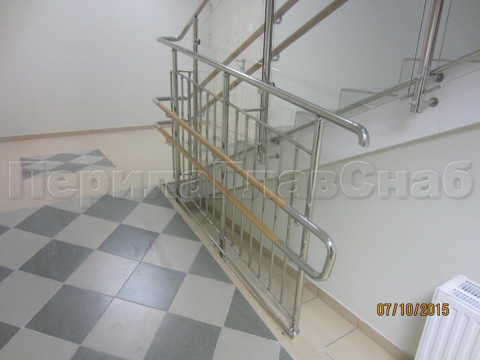 Двойной пристенный поручень из нержавейки в Красноярске. Готовые проекты ПерилаГлавСнаб