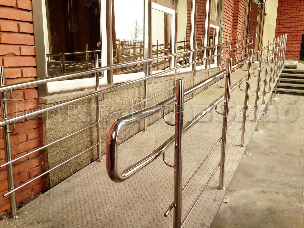 • Опорные перила из нержавейки для инвалидов-колясочников не должны иметь скользкую поверхность. В противном случае за них не будет удобно держаться.