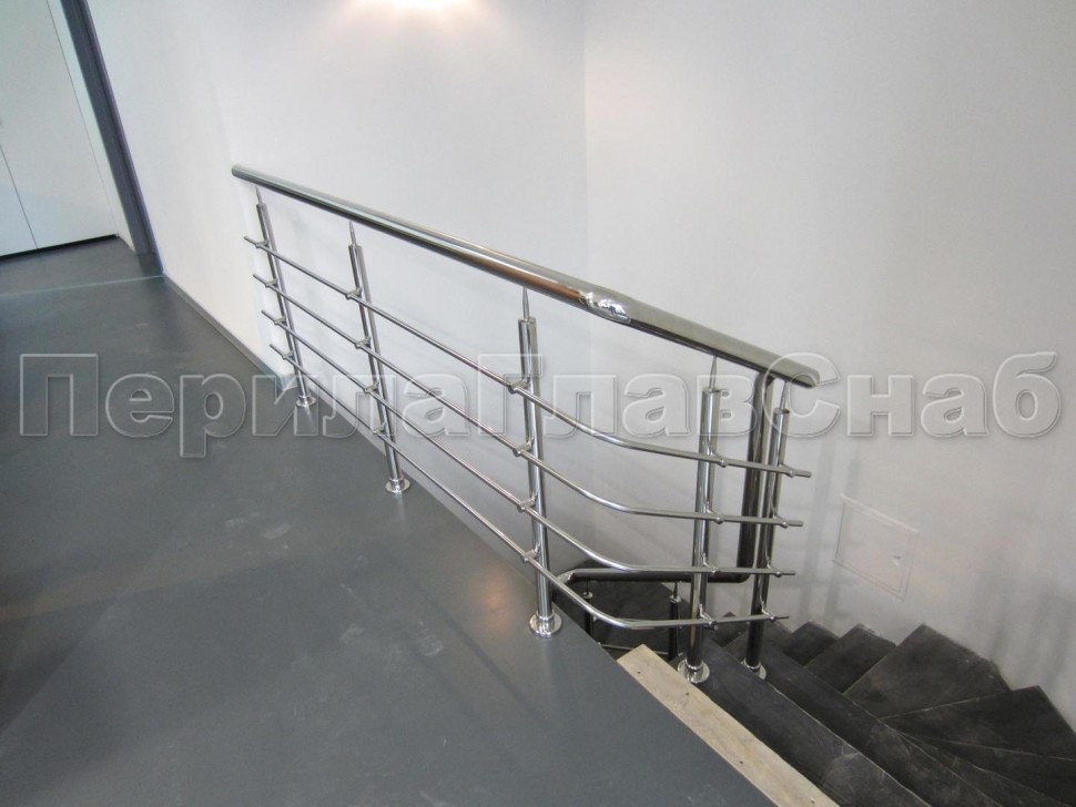 Четыре ригеля на сварке, круглый поручень и квадратные стойки