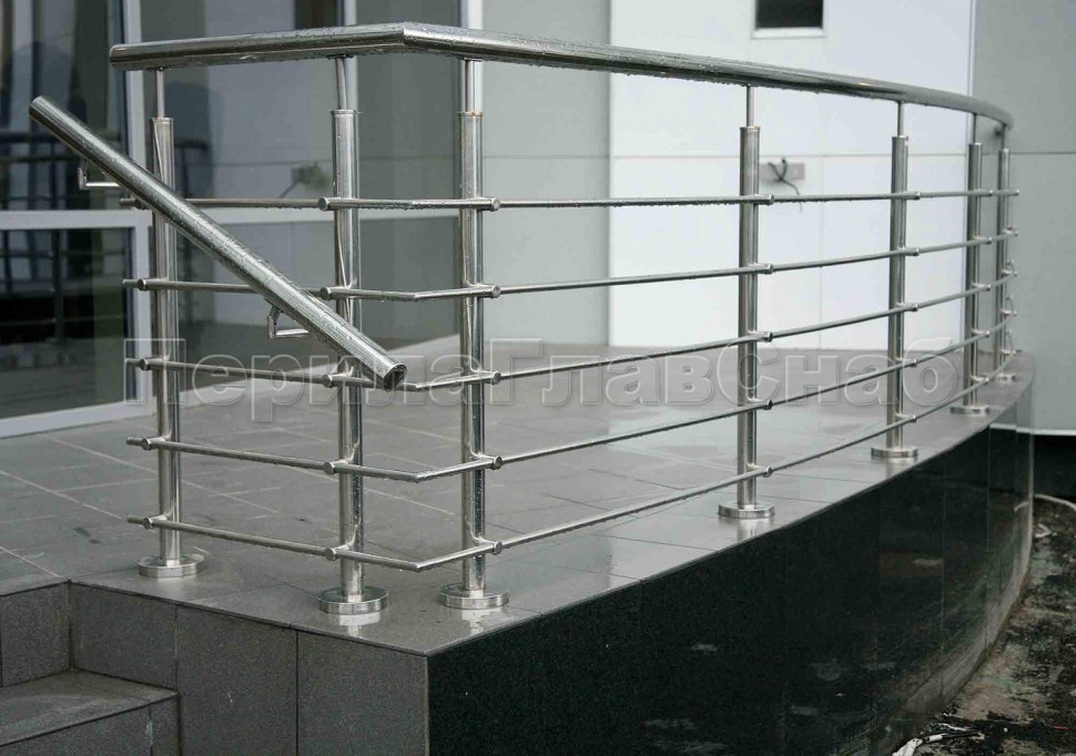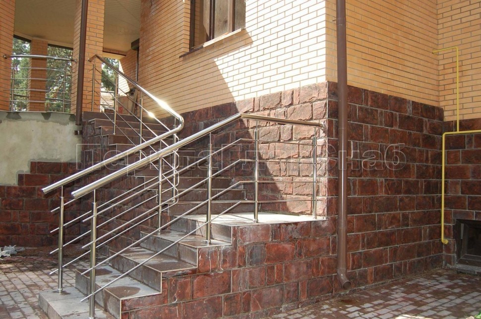 Четыре ригеля на сварке, круглый поручень и круглые стойки для крыльца