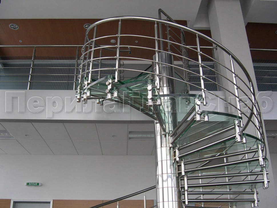 Стеклянные ограждения винтовой лестницы и баллюстрады