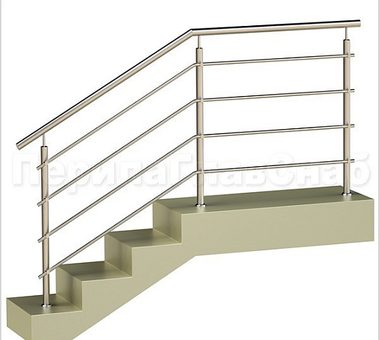 Четыре ригеля на держателях, круглый поручень и квадратные стойки