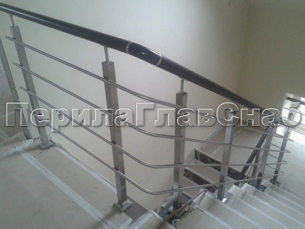Четыре ригеля на держателях, квадратный поручень и квадратные стойки