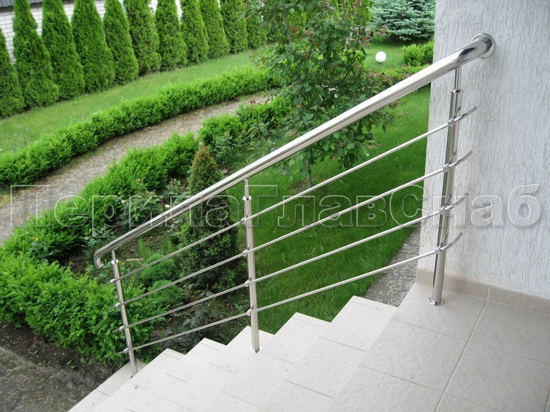 Четыре ригеля на сварке, круглый поручень и круглые стойки для крыльца
