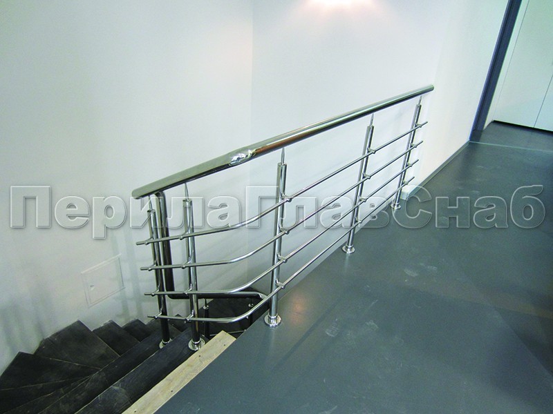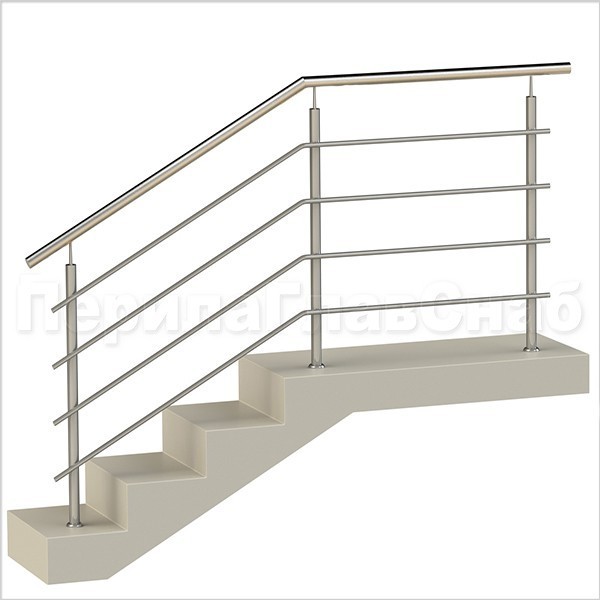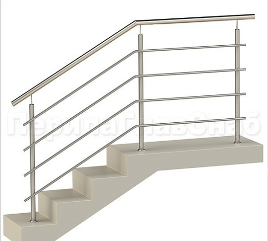 Четыре ригеля на держателях, круглый поручень и квадратные стойки