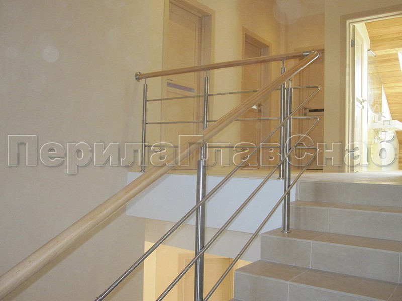 Нержавеющие ограждения без ригелей с круглым поручнем и стойками с деревянными вставками