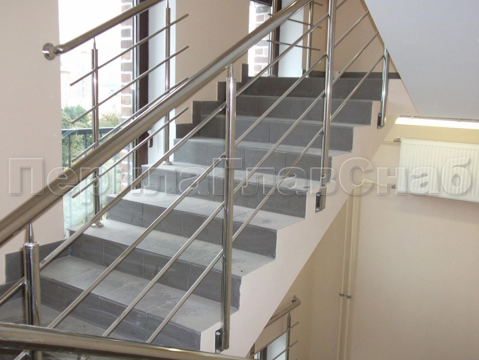 Четыре ригеля на сварке, квадратный поручень и круглые стойки