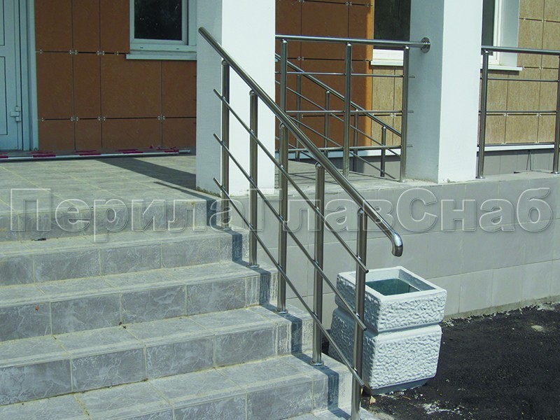 Нержавеющие ограждения для школ и детских садов с вертикальным заполнением “Частокол” - вариант №1 для крыльца