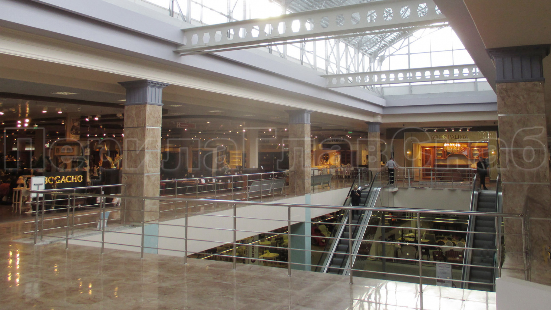 Ограждение атриума из стекла с поручнем без стоек