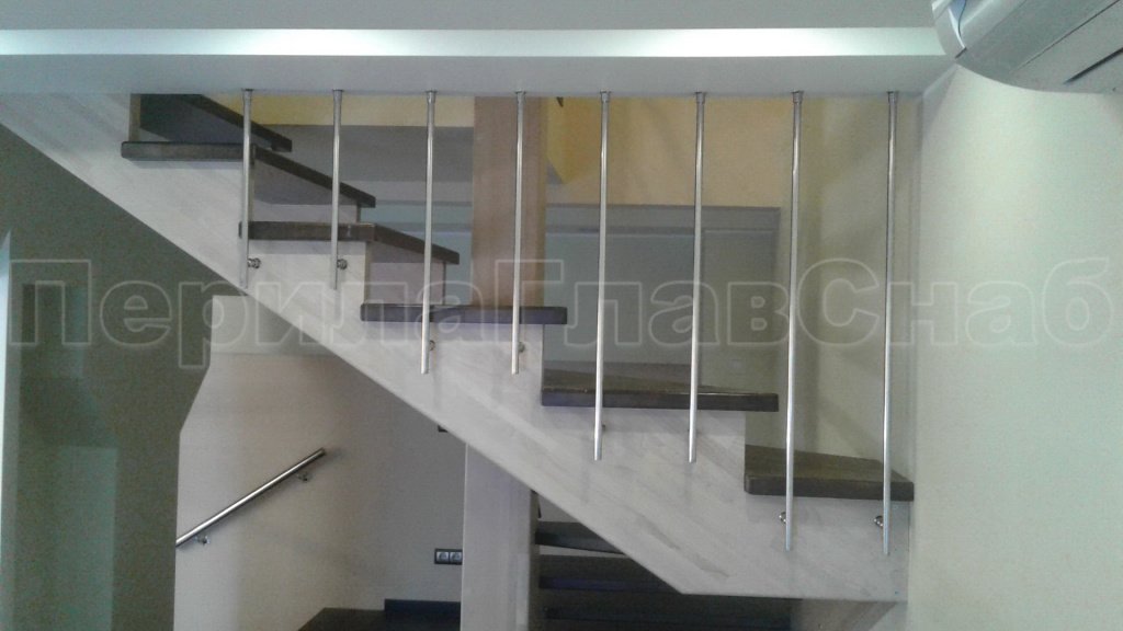 Нержавеющие ограждения с вертикальным заполнением 'частокол' - вариант №4 в Красноярске. Готовые проекты ПерилаГлавСнаб