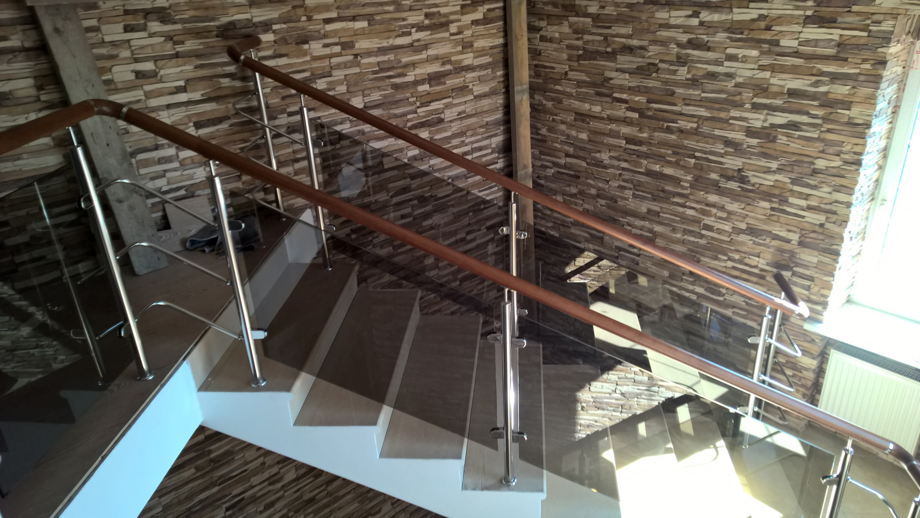 Ограждение с деревянным поручнем с зажимными стеклодержателями и стойками в Красноярске. Готовые проекты ПерилаГлавСнаб - фото 1 Ограждение с деревянным поручнем с зажимными стеклодержателями и стойками в Красноярске. Готовые проекты ПерилаГлавСнаб - фото 2