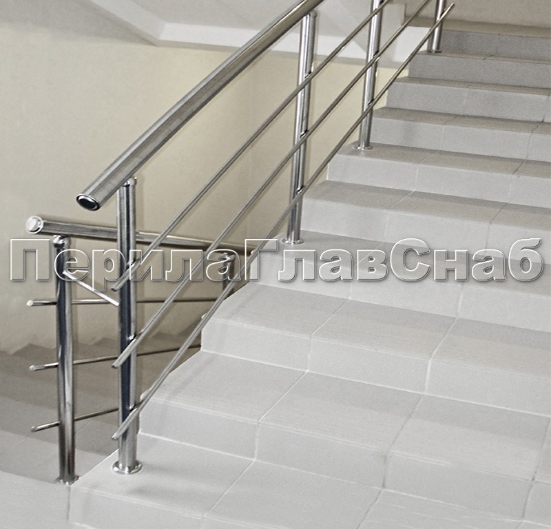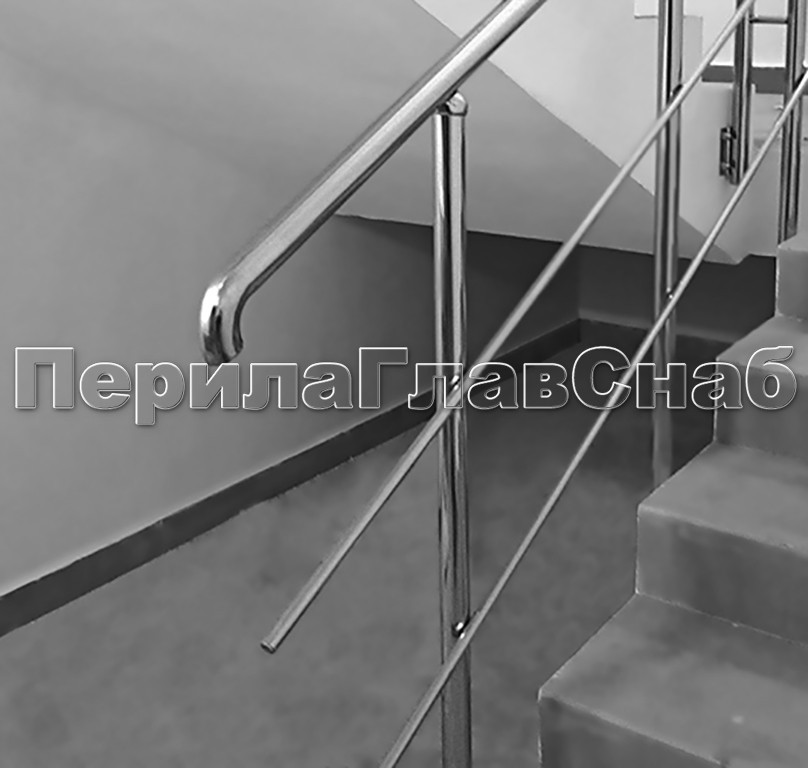 Четыре ригеля на держателях, круглый поручень и квадратные стойки