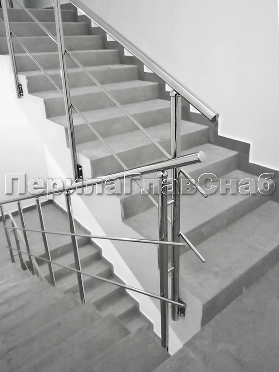 Два ригеля на держателях, круглый поручень и круглые стойки