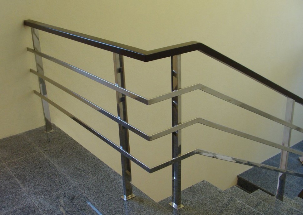 Четыре ригеля на сварке, круглый поручень и квадратные стойки