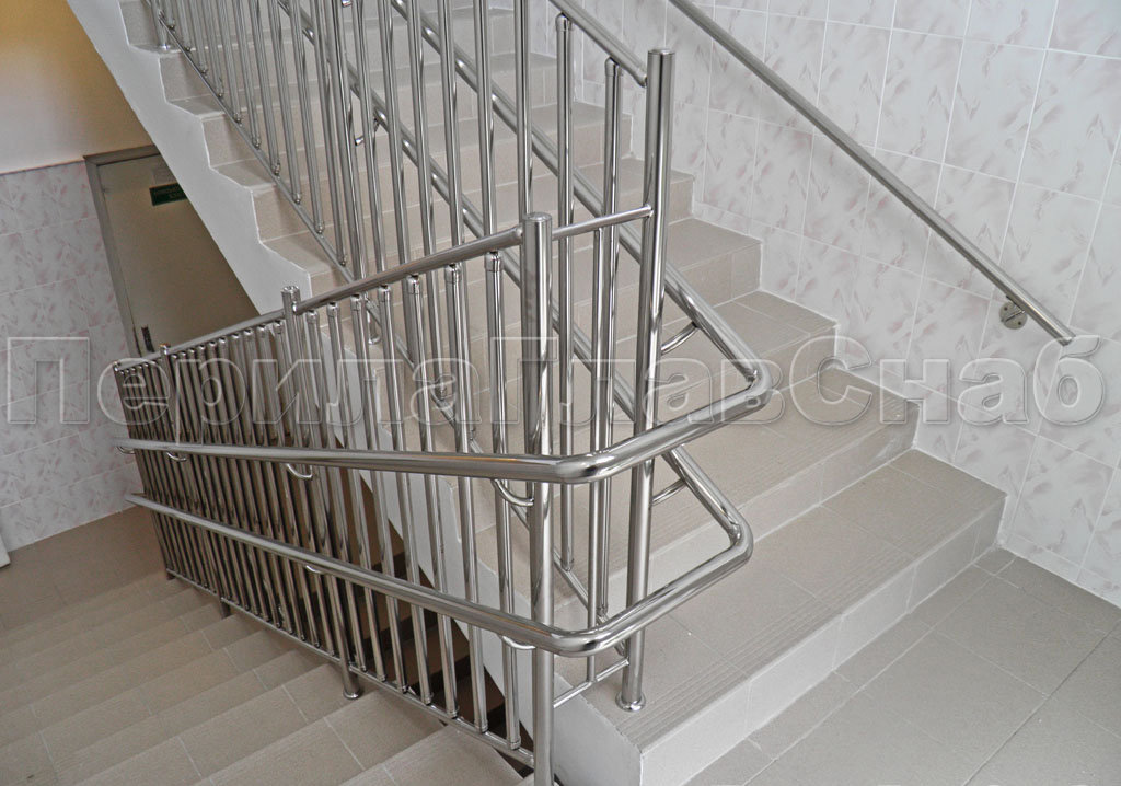 Нержавеющие ограждения для школ и детских садов с вертикальным заполнением “Частокол” - вариант №1 для крыльца