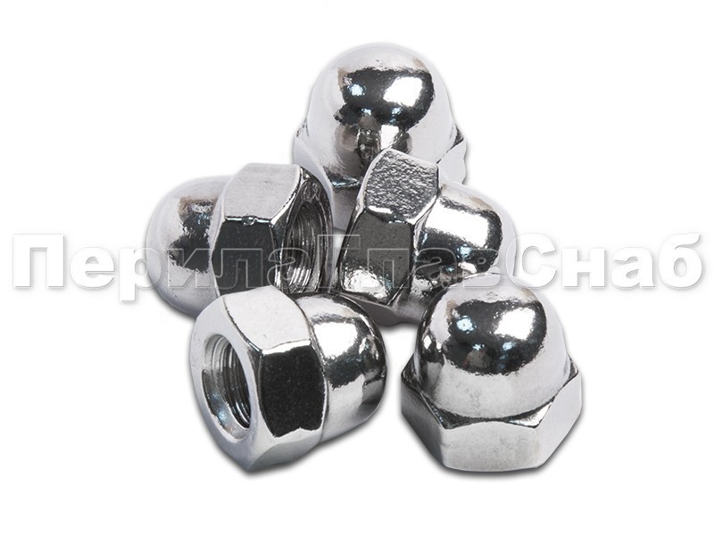 Гайка колпачковая DIN 1587 (ГОСТ 11860) нержавеющая сталь А2 Гайка со сферической торцевой поверхностью и глухим резьбовым отверстием. Колпачок гайки защищает резьбу от механических повреждений и коррозии, повышает травмобезопасность, а также улучшает внешний вид соединения. Используется как декоративная закрытая часть крепления.