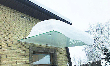 При расчете нагрузки на стеклянные козырьки над входом следует учитывать внезапную мгновенную нагрузку в виде схода с кровли ...