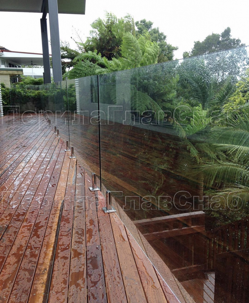 Самые дешевые ограждения из стекла - со стойками на стеклодержателях.