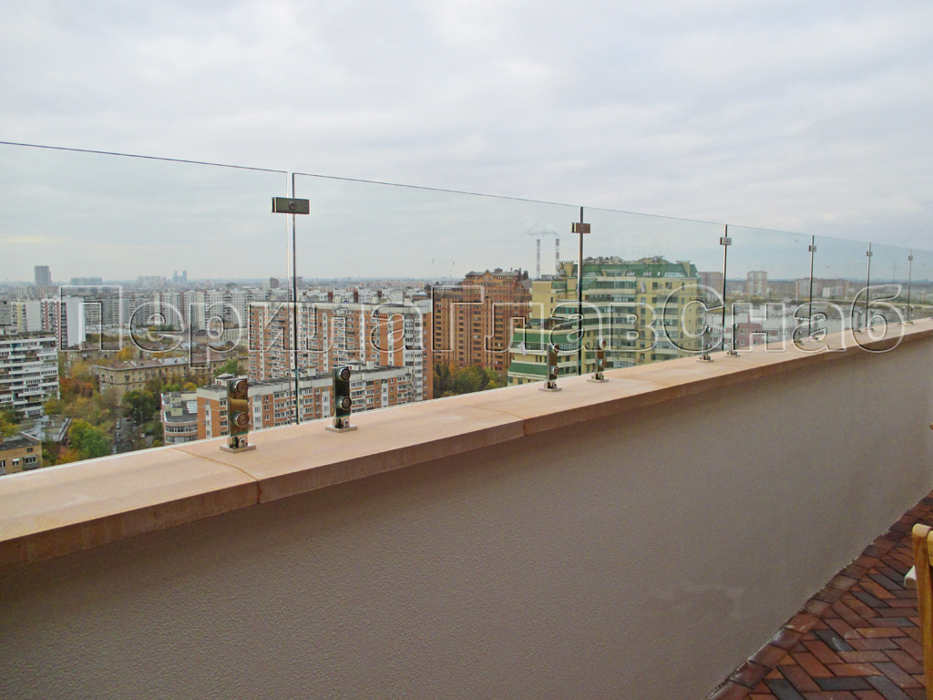 Стеклянные ограждения балкона со стойками
