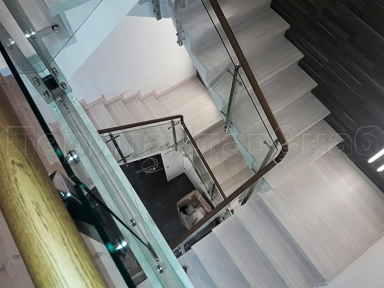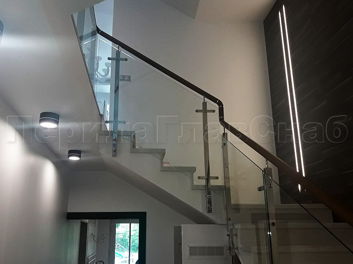 Ограждение лестницы с квадратными стойками и пластинчатыми стеклодержателями в Красноярске. Готовые проекты ПерилаГлавСнаб - фото 1 Ограждение лестницы с квадратными стойками и пластинчатыми стеклодержателями в Красноярске. Готовые проекты ПерилаГлавСнаб - фото 2