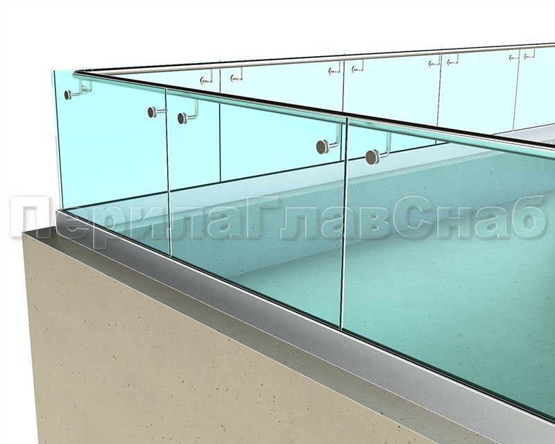 Кромка стекла может быть открыта или закрыта трубой с пазом или специальным нержавеющий п-образным поручнем.